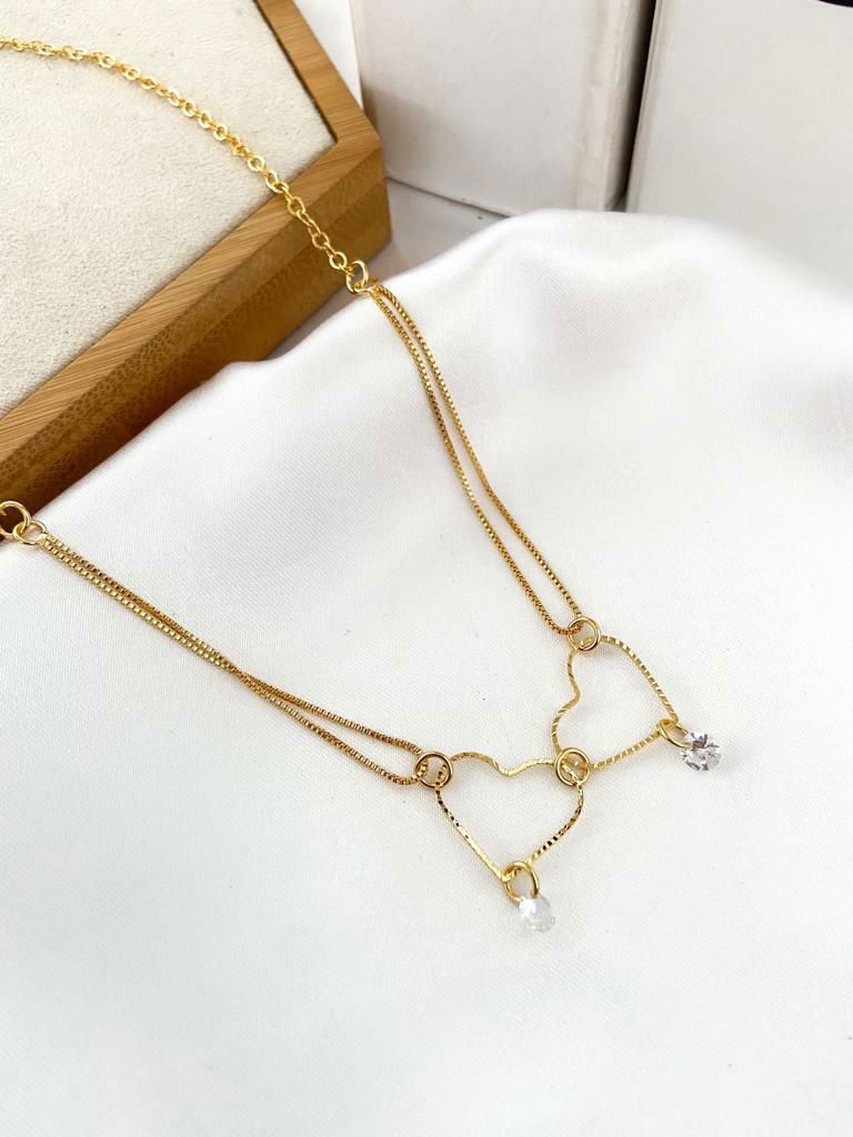 2. Colar com veneziana 2 fios e coração duplo folheado a ouro
