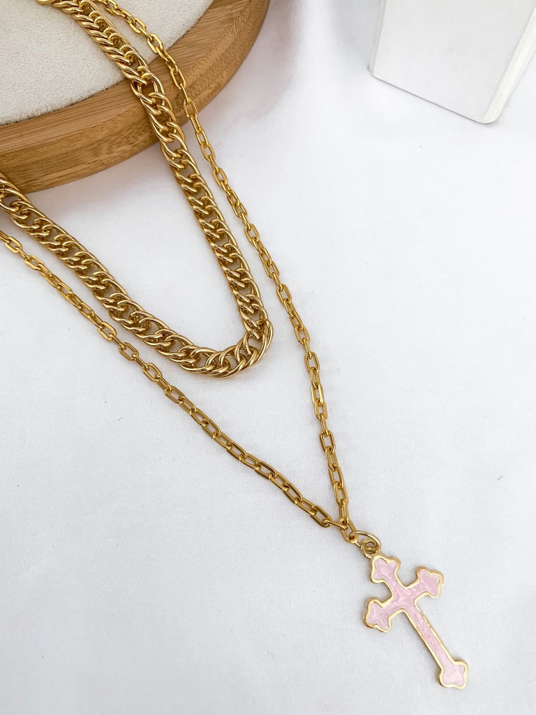 2. Colar correntaria dois fios folheado com pingente de cruz