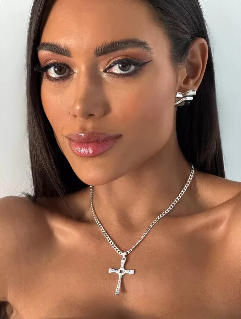 3. Colar corrente elo com pingente de crucifixo com detalhes em micro zircônia cravejado folheado a ouro 18k e prata 925.