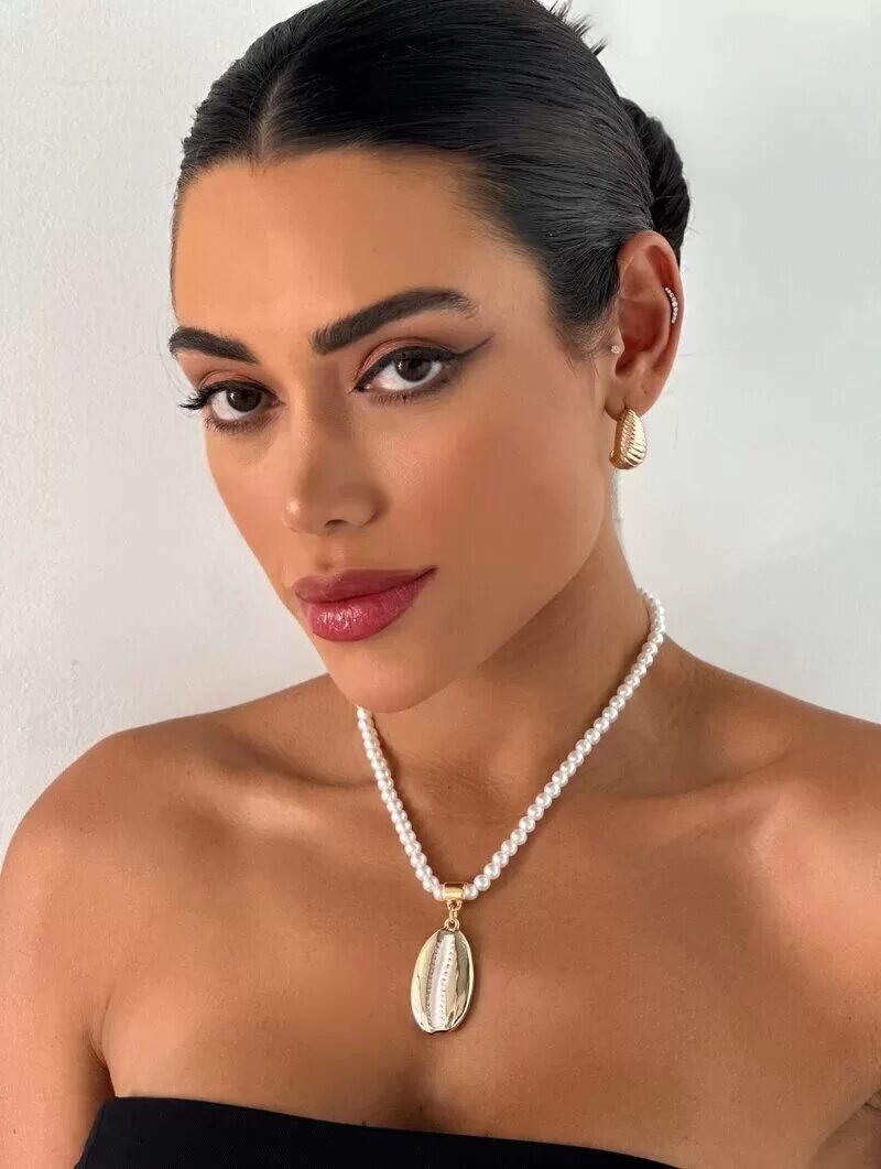 3. Colar de Pérolas com Pingente Búzio com Detalhe Esmaltado