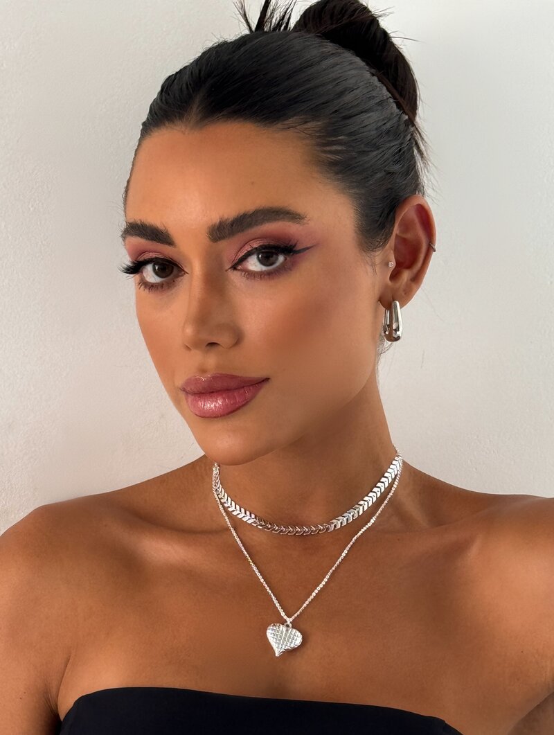 3. Colar Dupla Folheado a Prata 925 com Escamas e Coração