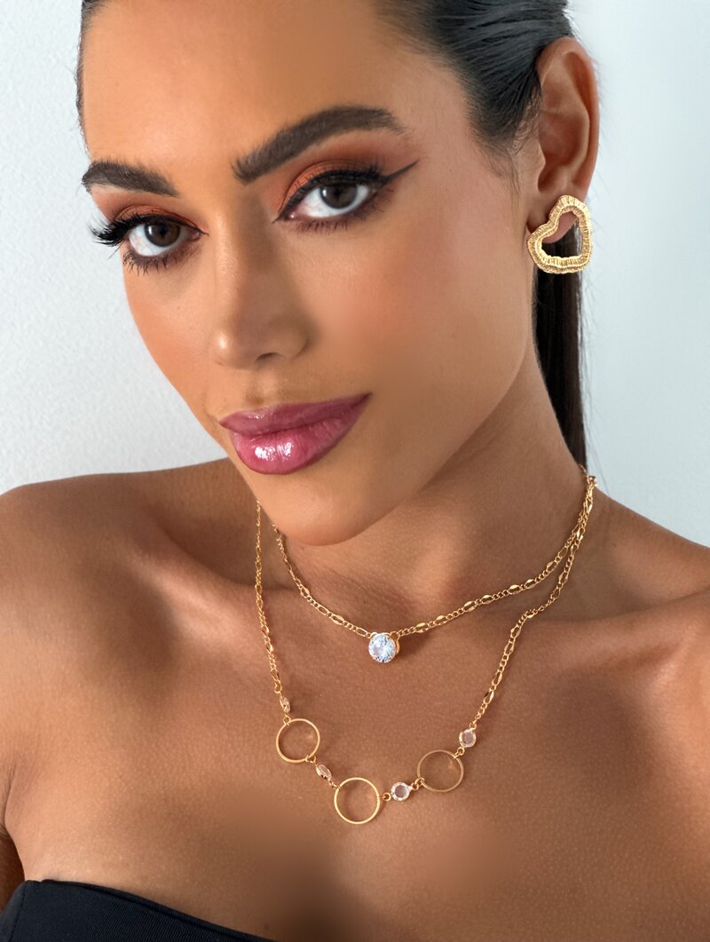 3. Colar Duplo Folheado a Ouro 18k Circulos Vazados com Pingente de Zircônia