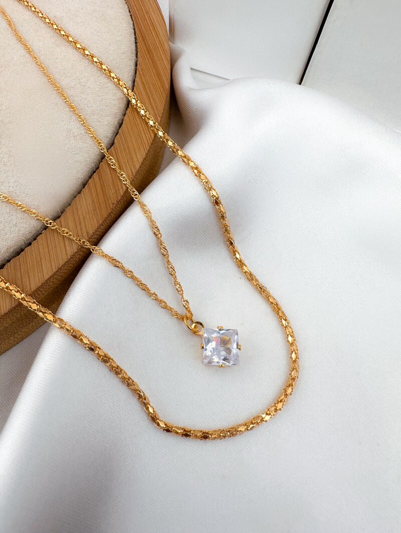 3. Colar Duplo Folheado a Ouro 18k Cristal