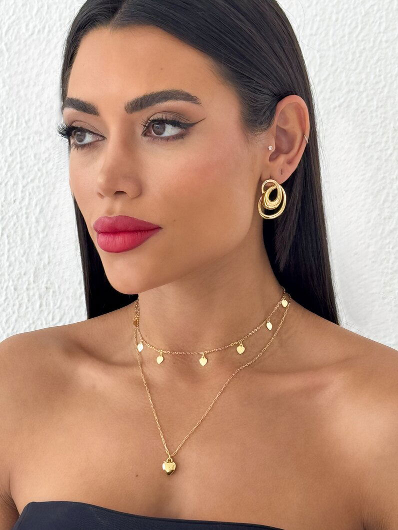 3. Colar Duplo Folheado a Ouro 18k e Prata Corações