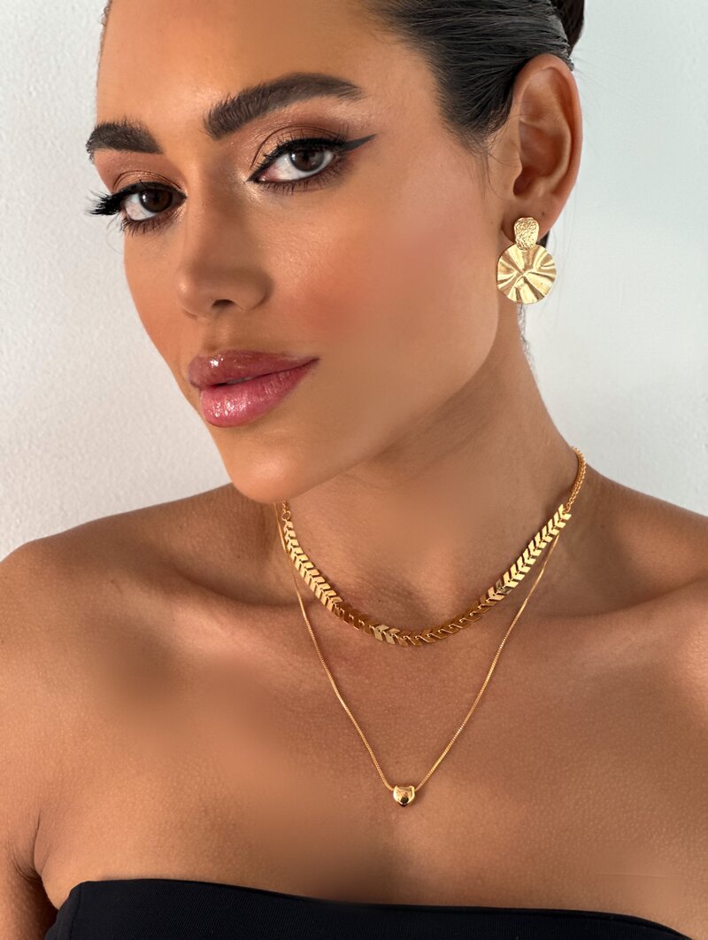 3. Colar Duplo Folheado a Ouro 18k Escamas com Coraçao Liso