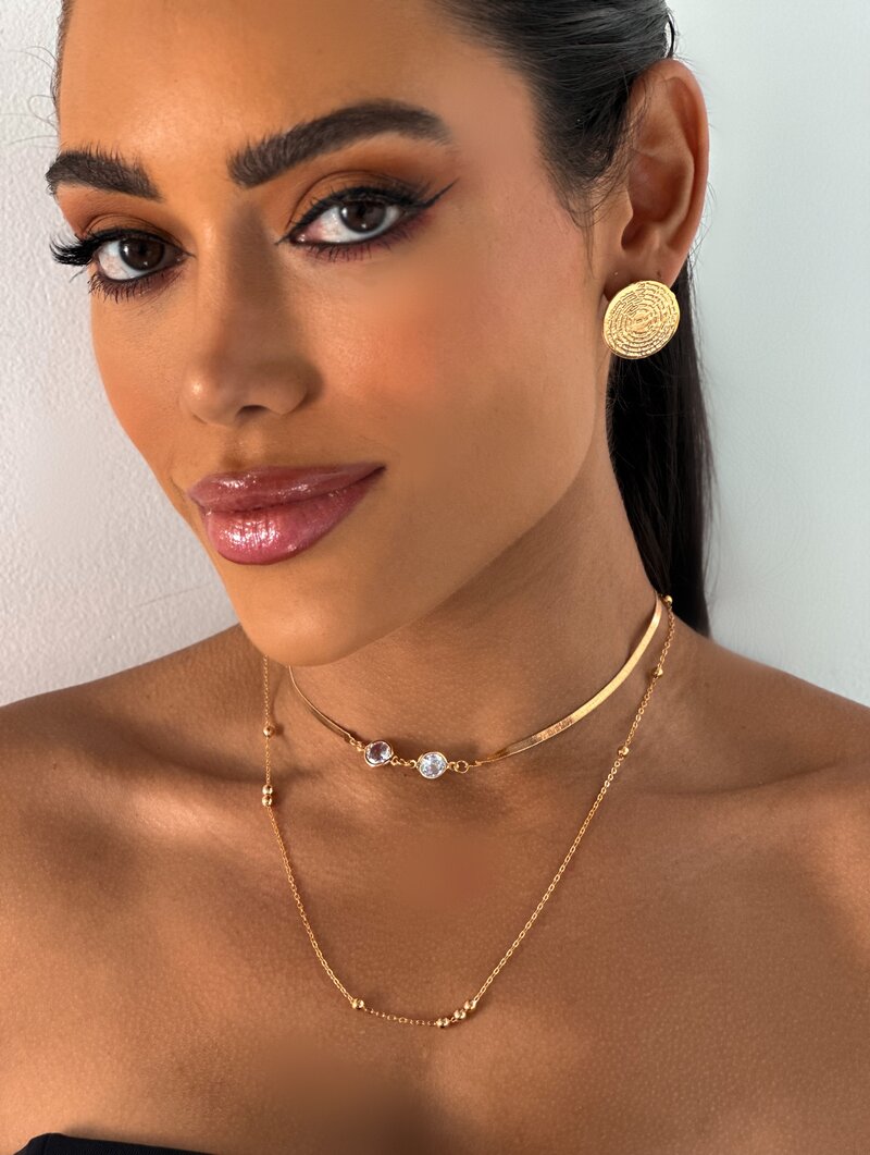 3. Colar Duplo Folheado a Ouro 18k Fita Laminada com Zircônias