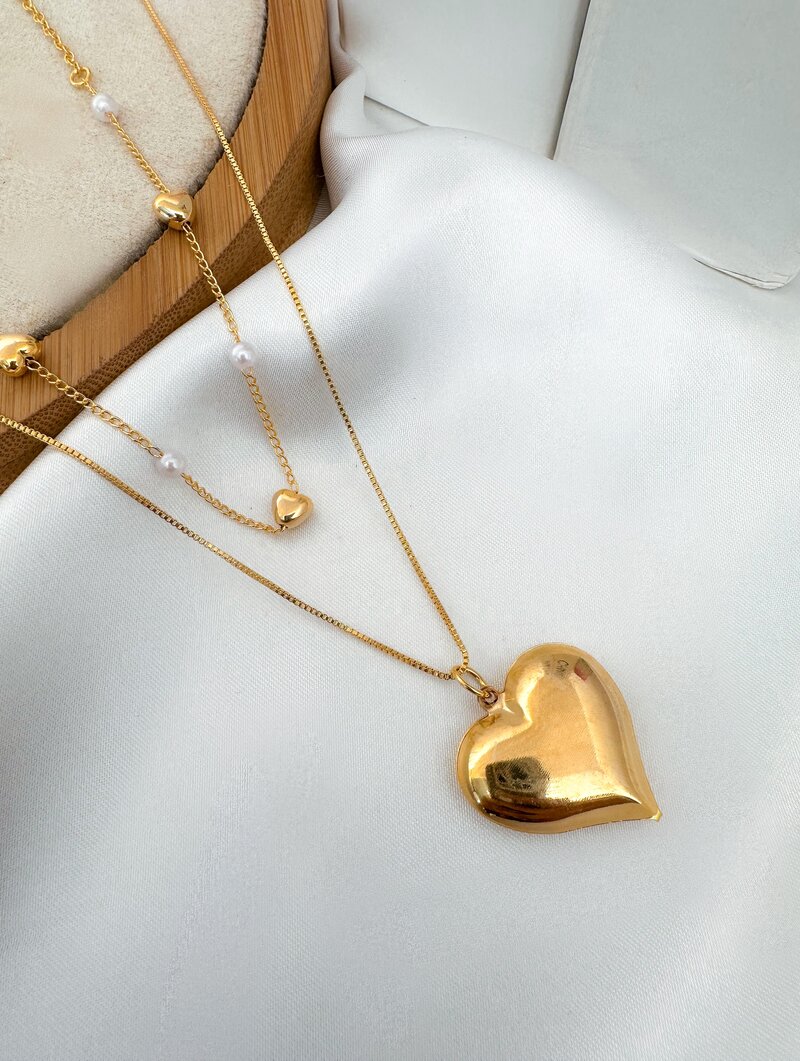 3. Colar Duplo Folheado a Ouro 18k Pingente Coração