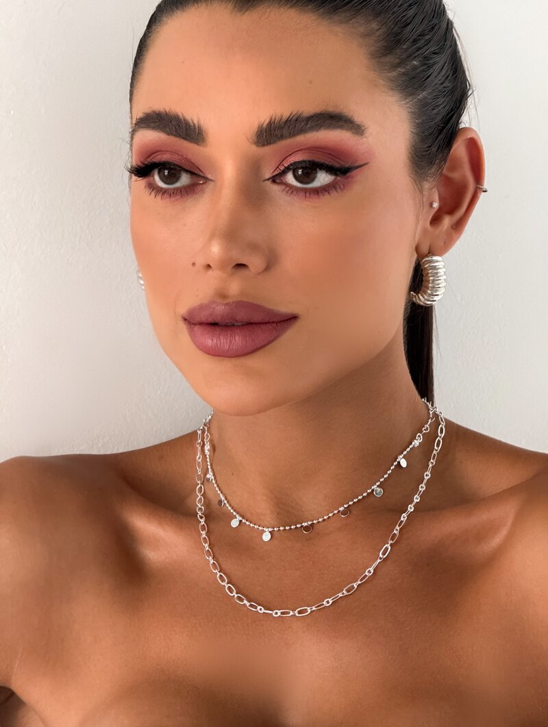 3. Colar Duplo Folheado a Prata 925 Elos com Chapinhas Lisas