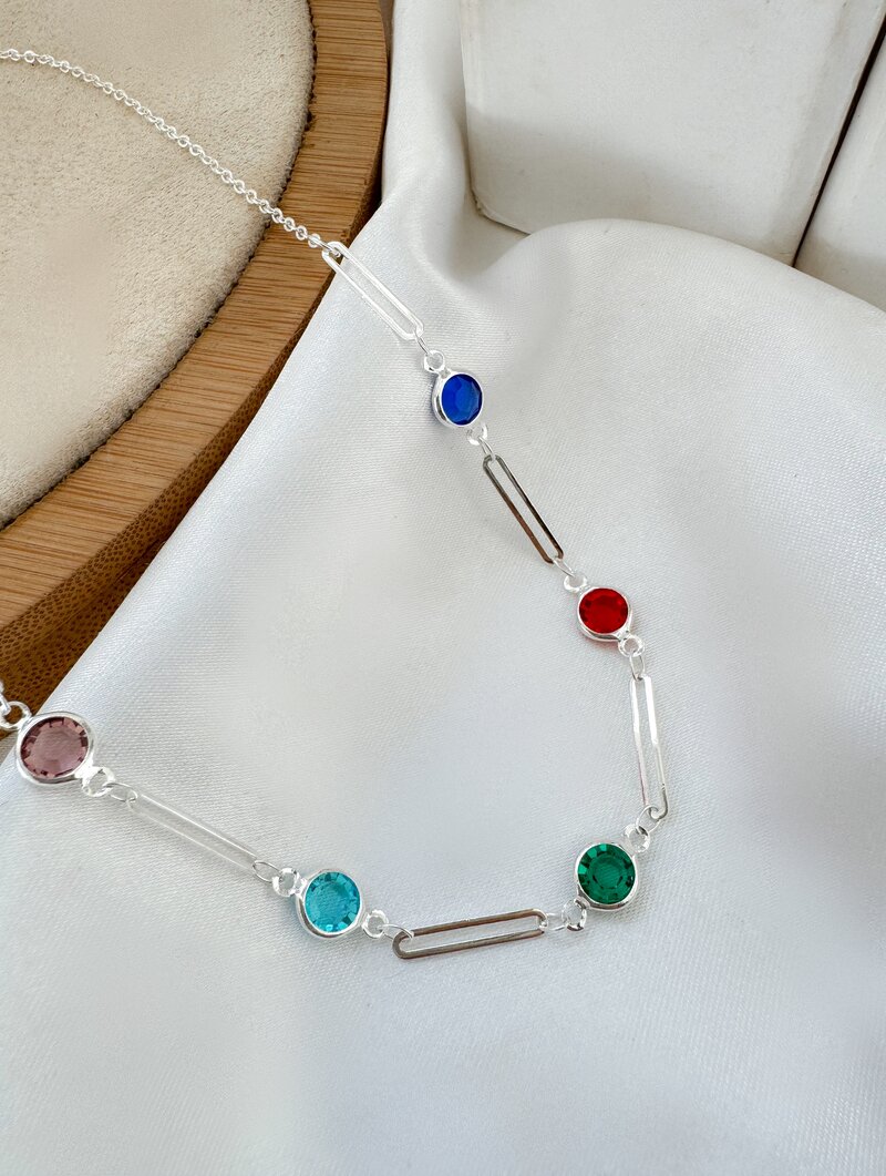 Colar Duplo Folheado a Prata 925 Elos Finos com Zircônias Coloridas