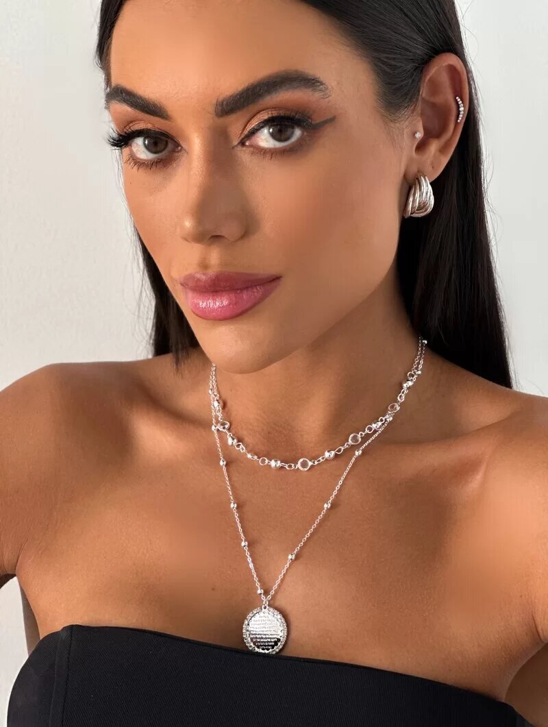 3. Colar Duplo Folheado a Prata 925 Pingente "Ave Maria"