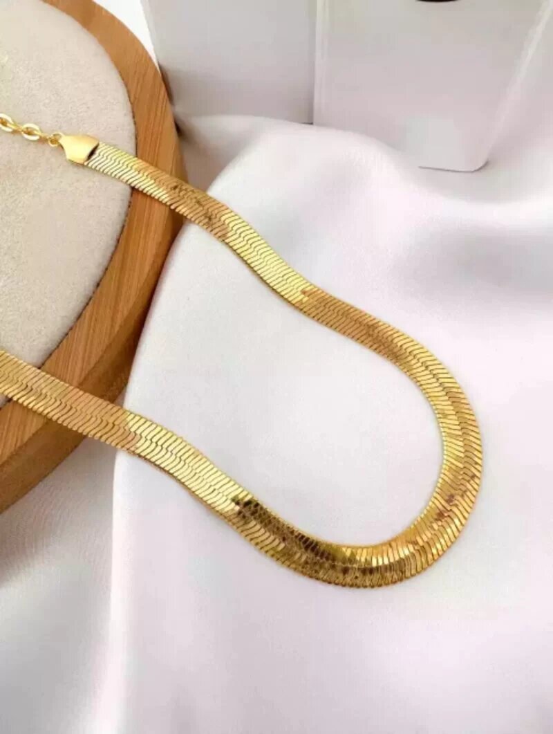 Colar fita laminada 8mm folheado a ouro 18k e prata 925.