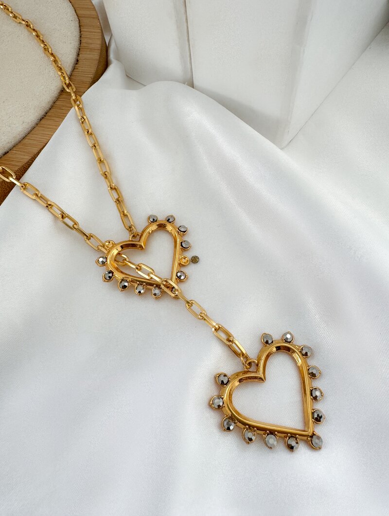 Colar Folhado a Ouro 18k Lariat com Coração