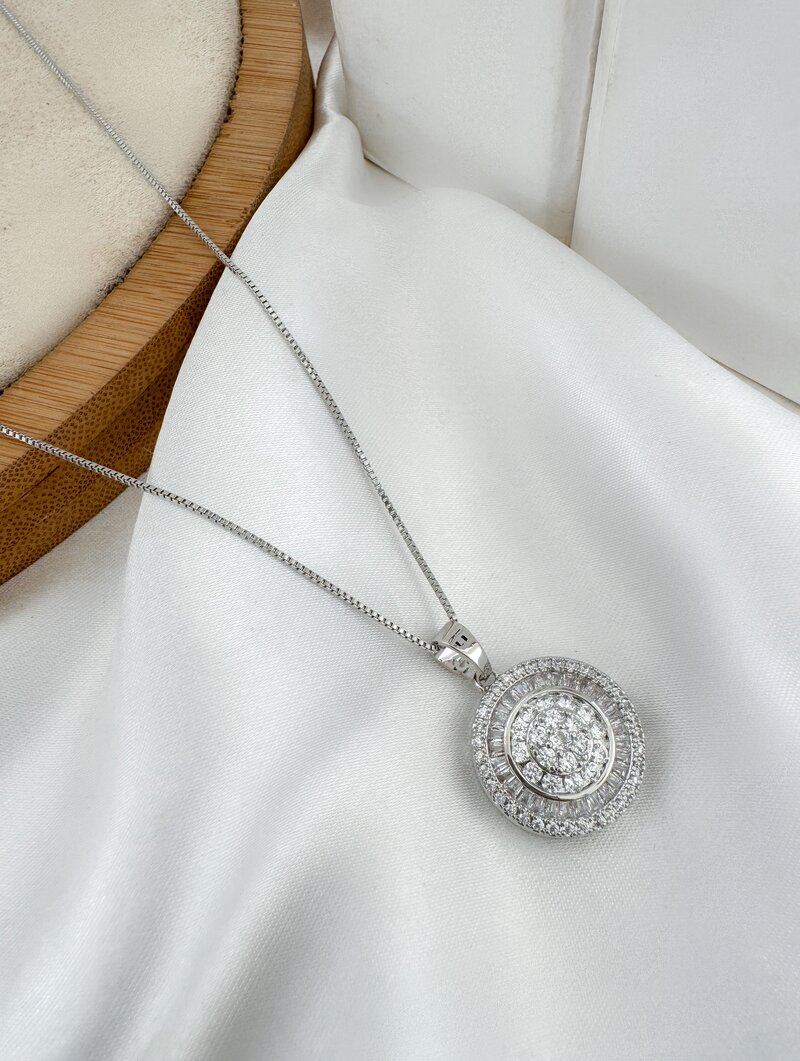 3. Colar Folhado a Prata Veneziana com Circulo Cravejado