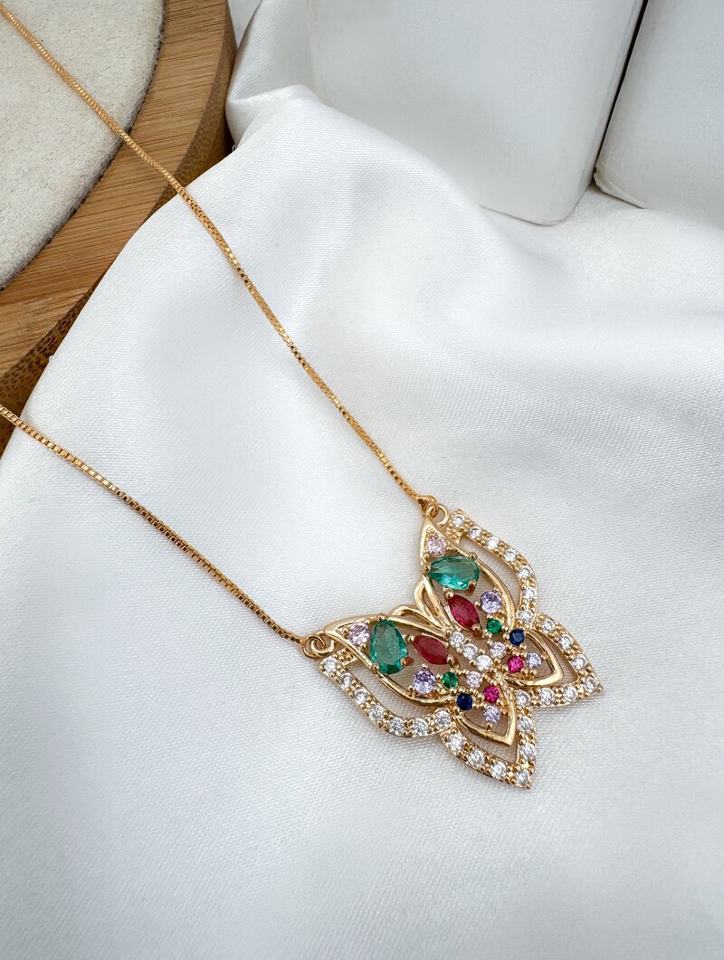 3. Colar Folheado a Ouro 18k Borboleta com Zircônios