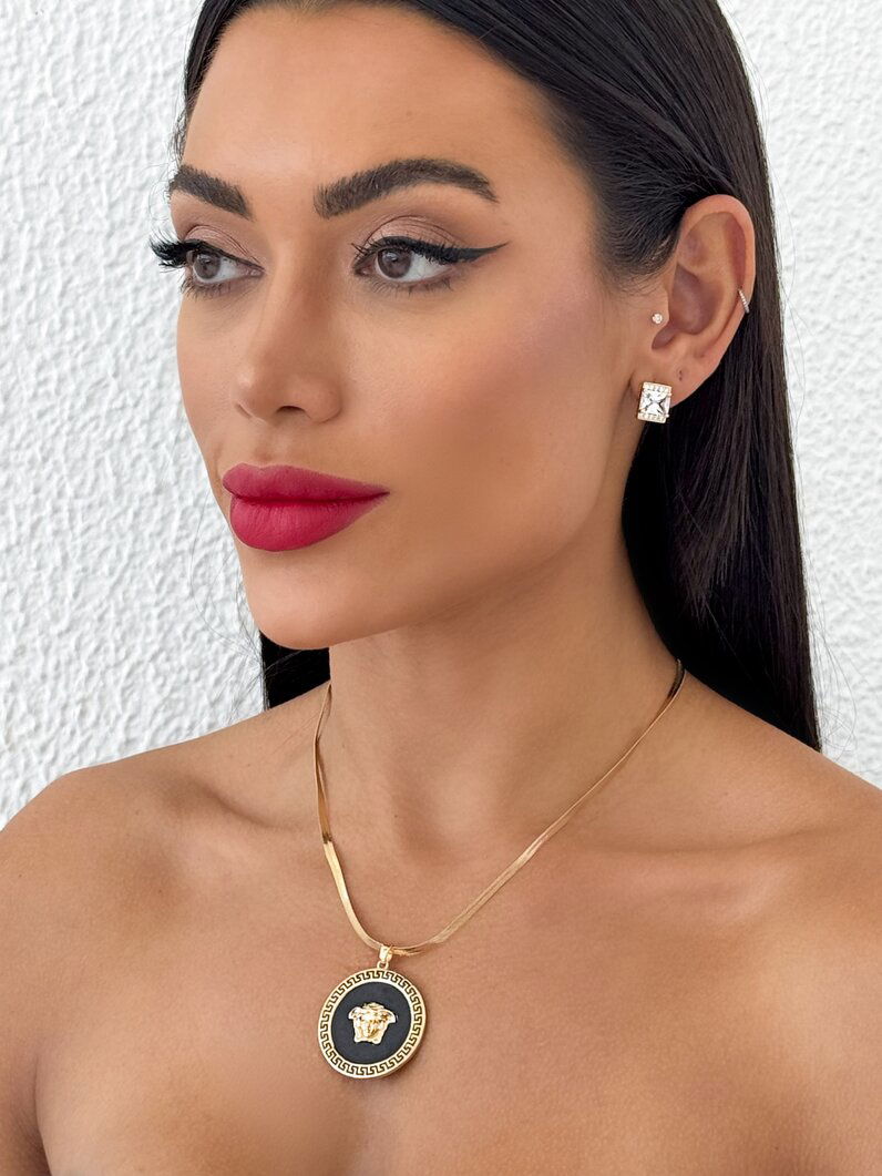 Colar Folheado a Ouro 18K Com Fita Laminada Inspiração VERSA. Com Resina