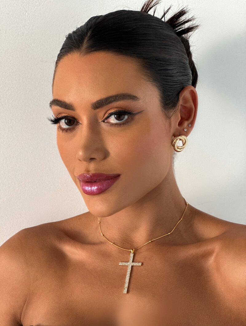 3. Colar Folheado a Ouro 18k com Pingente de Cruz Cravejada com Micro Zircônias