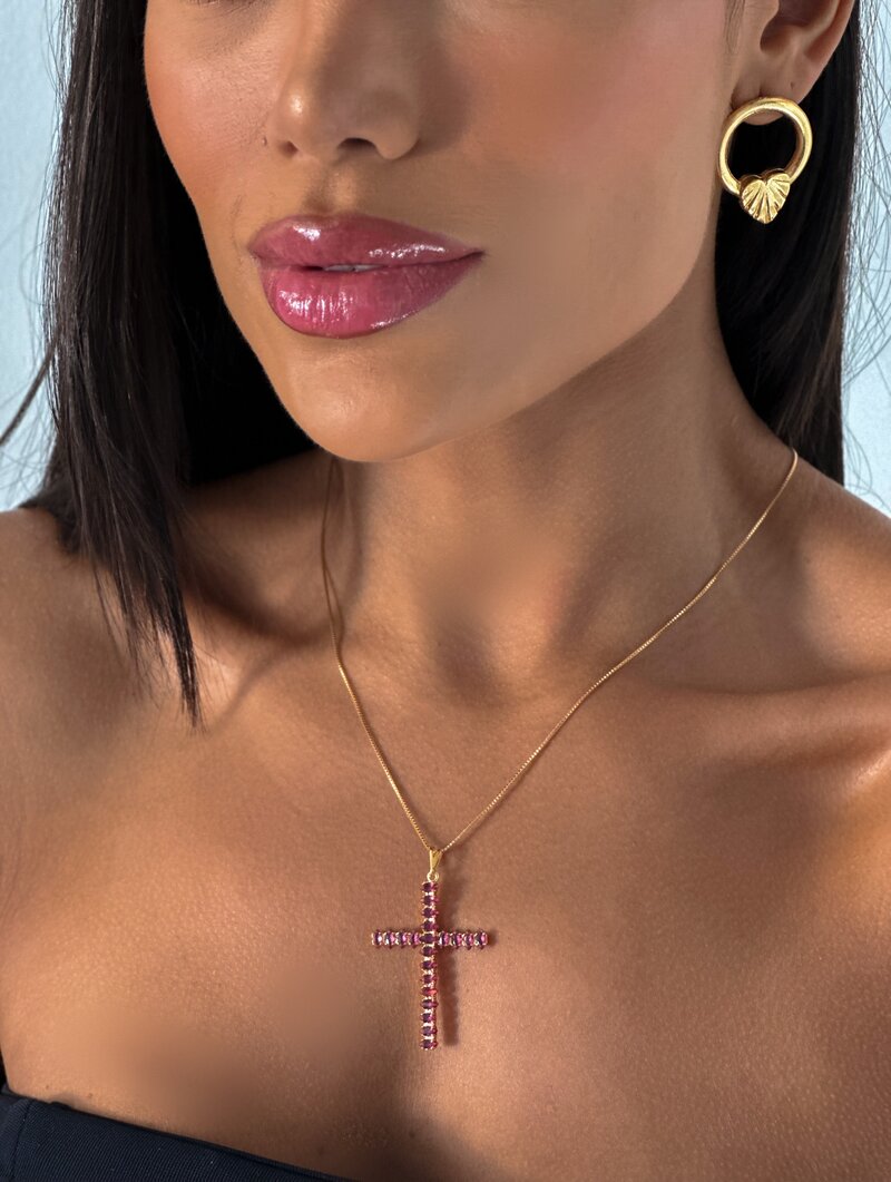 3. Colar folheado a ouro 18k com pingente de cruz de zircônia.
