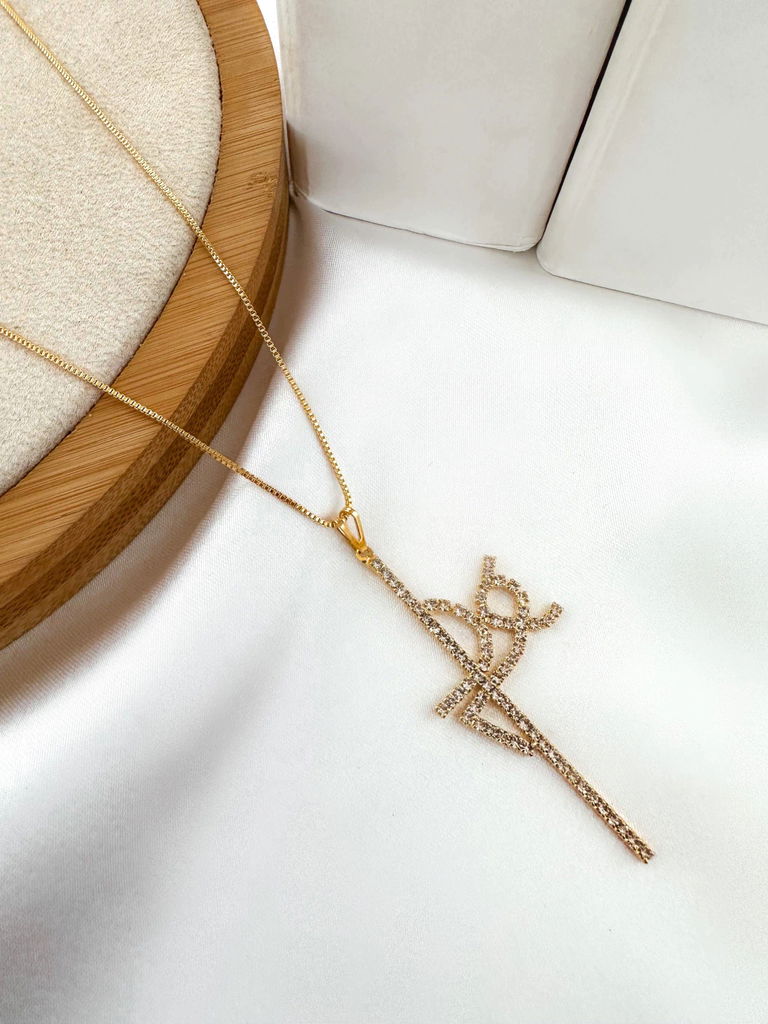 2. Colar folheado a ouro 18k com pingente fé micro zircônias.