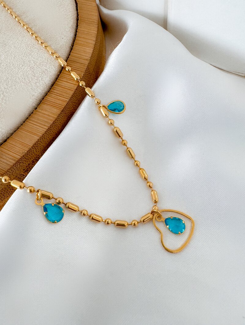 3. Colar Folheado a Ouro 18k Coração com Zircônias Azuis