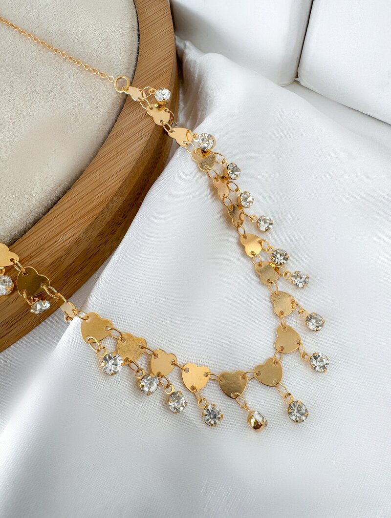 Colar Folheado a Ouro 18k Corações com Zircônias