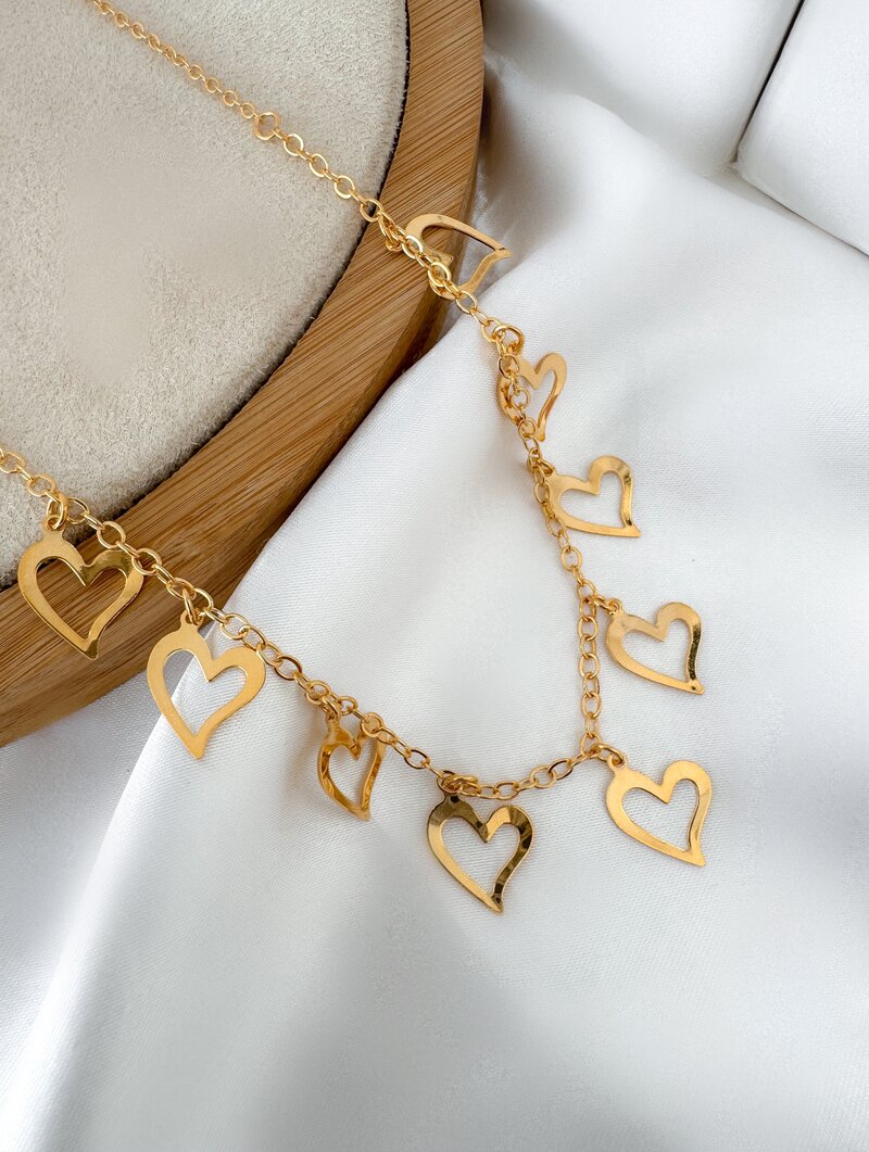 3. Colar Folheado a Ouro 18k Corações Vazados