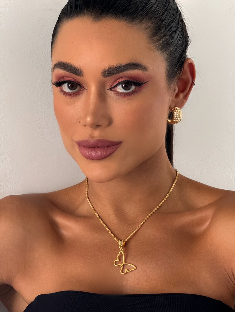 3. Colar Folheado a Ouro 18k Cordão Baiano com Borboleta Vazada
