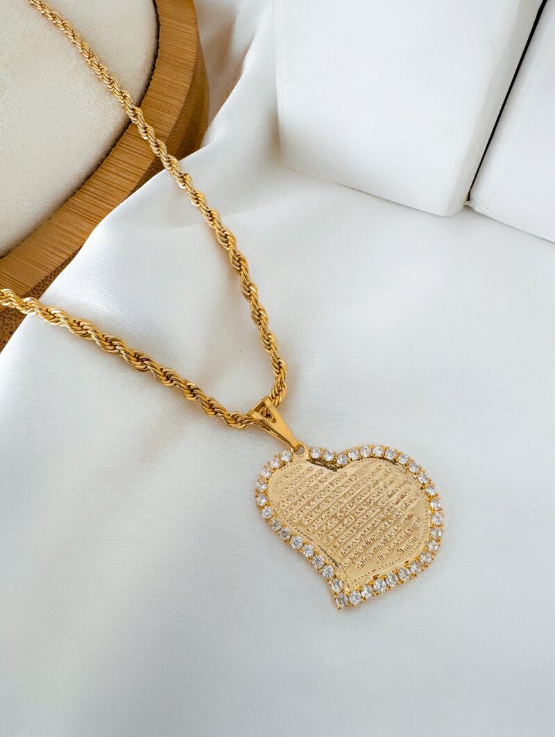 3. Colar Folheado a Ouro 18k Cordão Baiano com Coração com Pai Nosso
