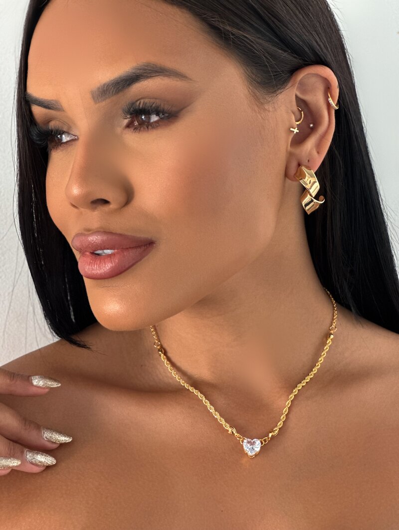 Colar Folheado a Ouro 18k Cordão Baiano com Coração de Zircônia