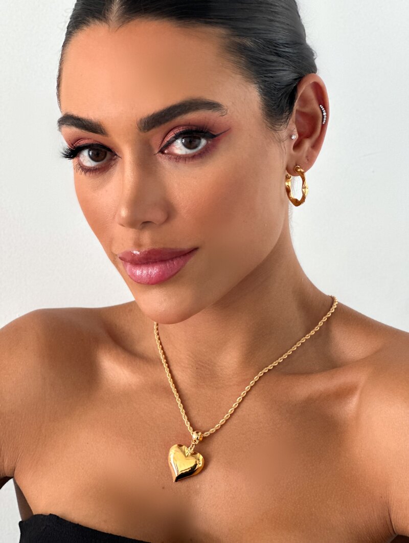 3. Colar Folheado a Ouro 18k Cordão Baiano com Coração Liso