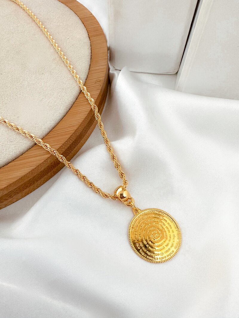 Colar Folheado a Ouro 18k Cordão Baiano com Medalha Pai Nosso