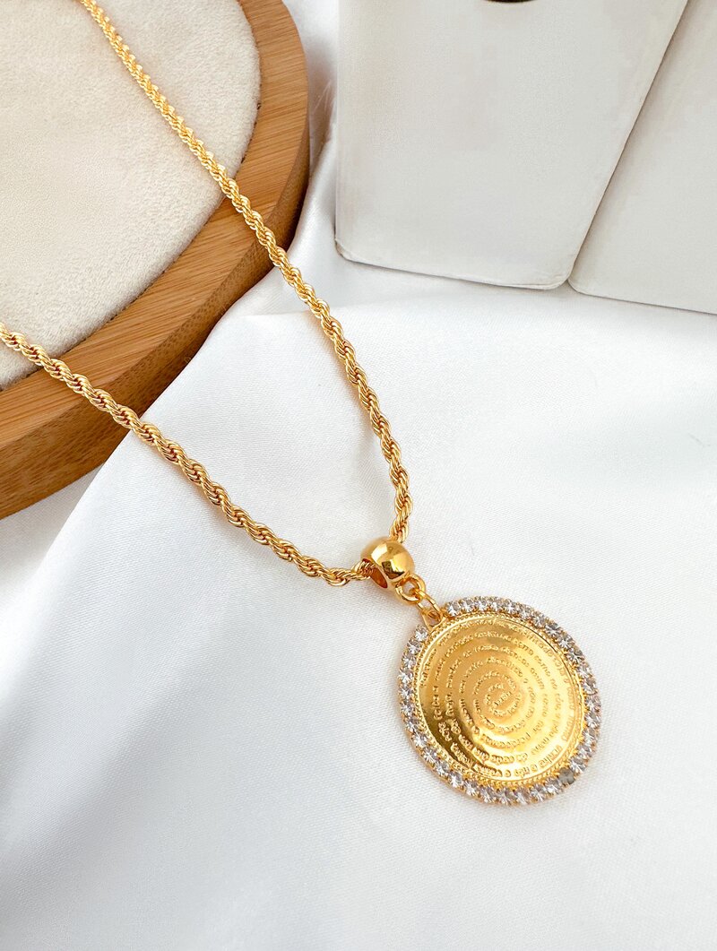 3. colar folheado a ouro 18k cordão baiano com pingente pai nosso