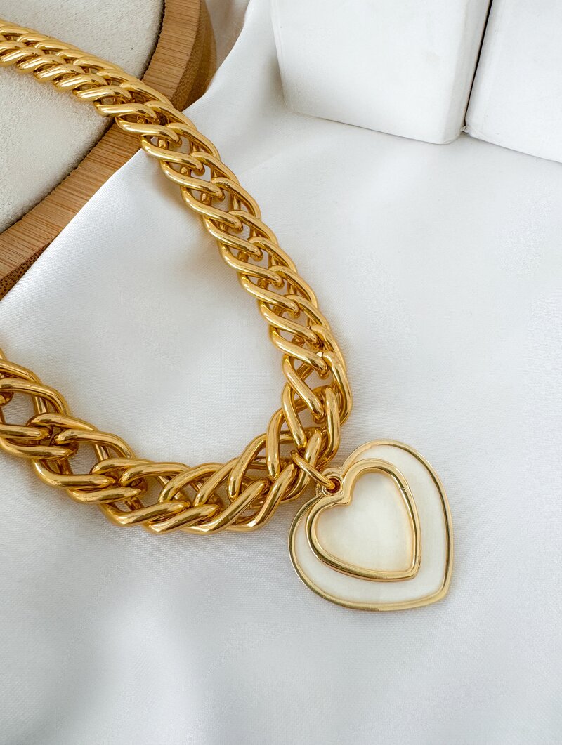 3. Colar Folheado a Ouro 18k Correntaria com Coração Duplo