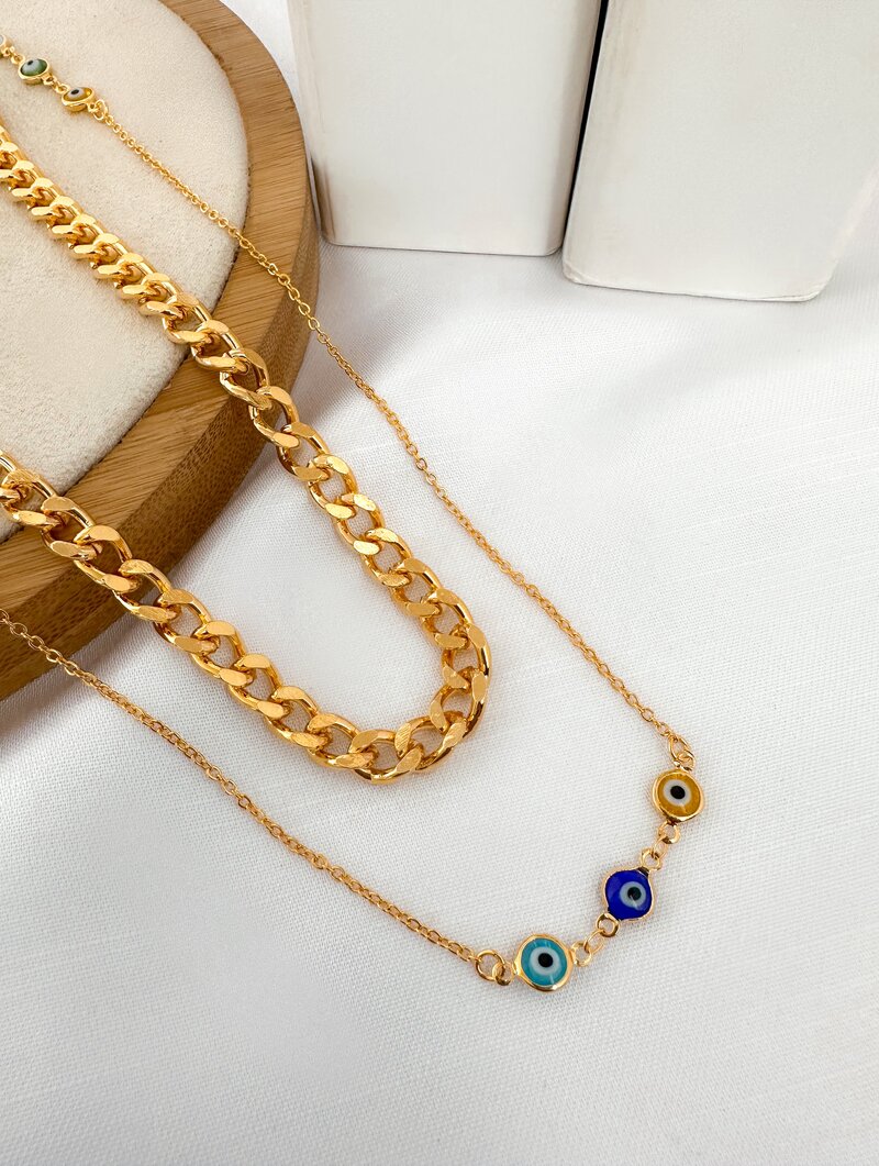 3. Colar Folheado a Ouro 18k Correntaria com Olho Grego