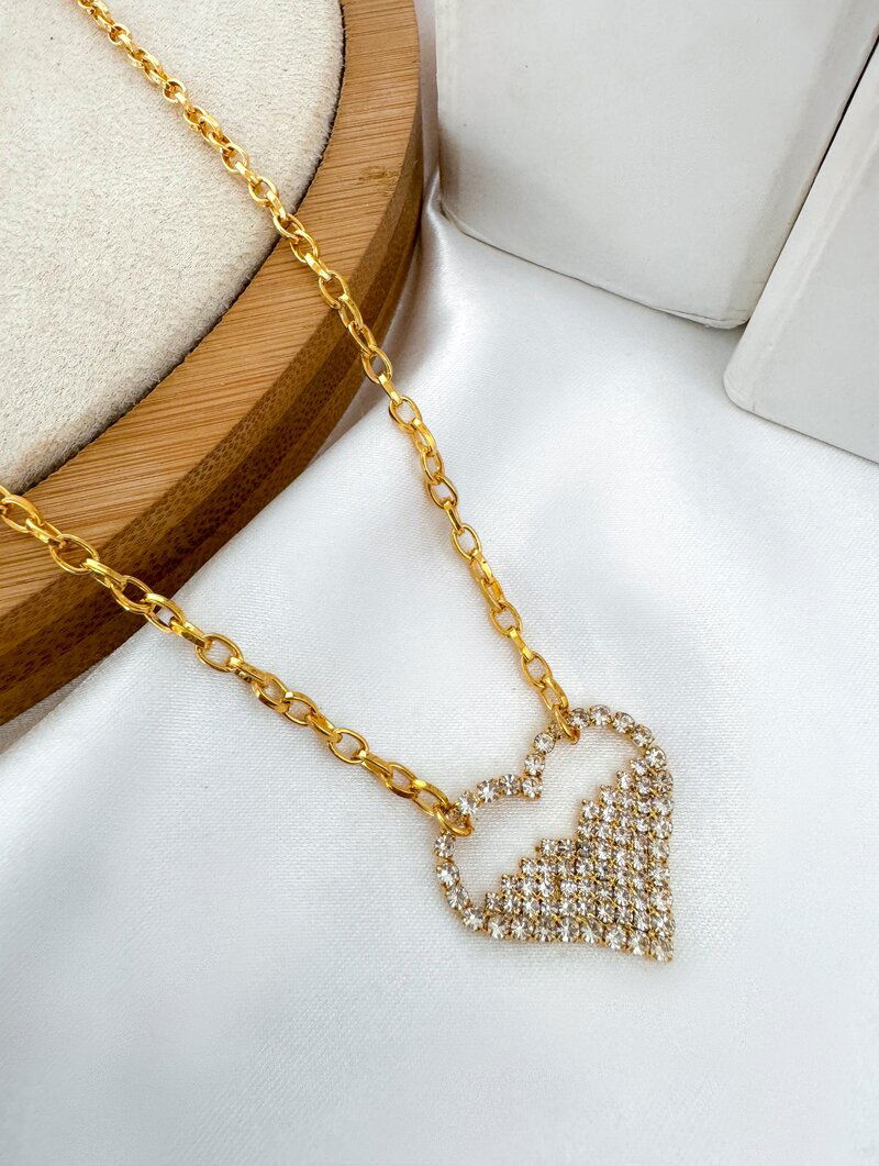 Colar Folheado a Ouro 18k Corrente com Coração Cravejado