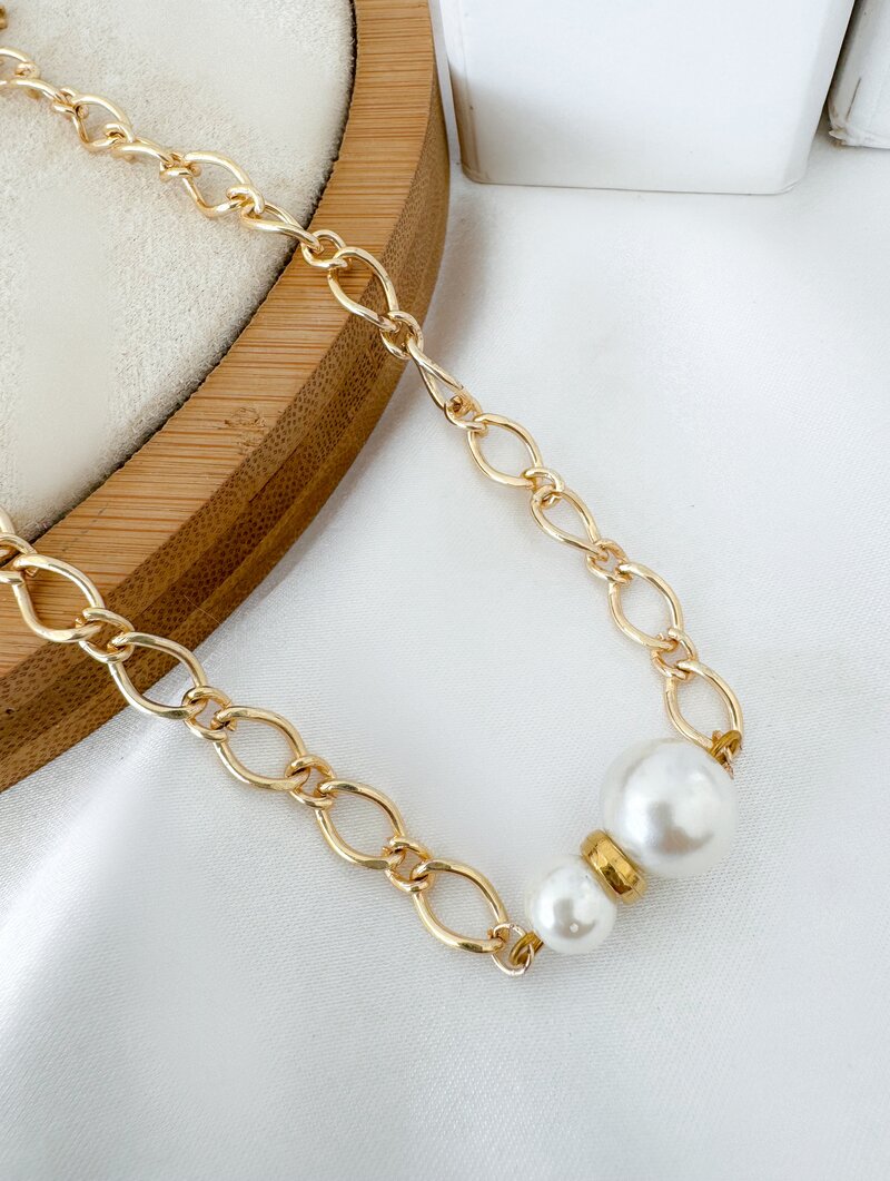 Colar Folheado a Ouro 18k Corrente com Pérolas