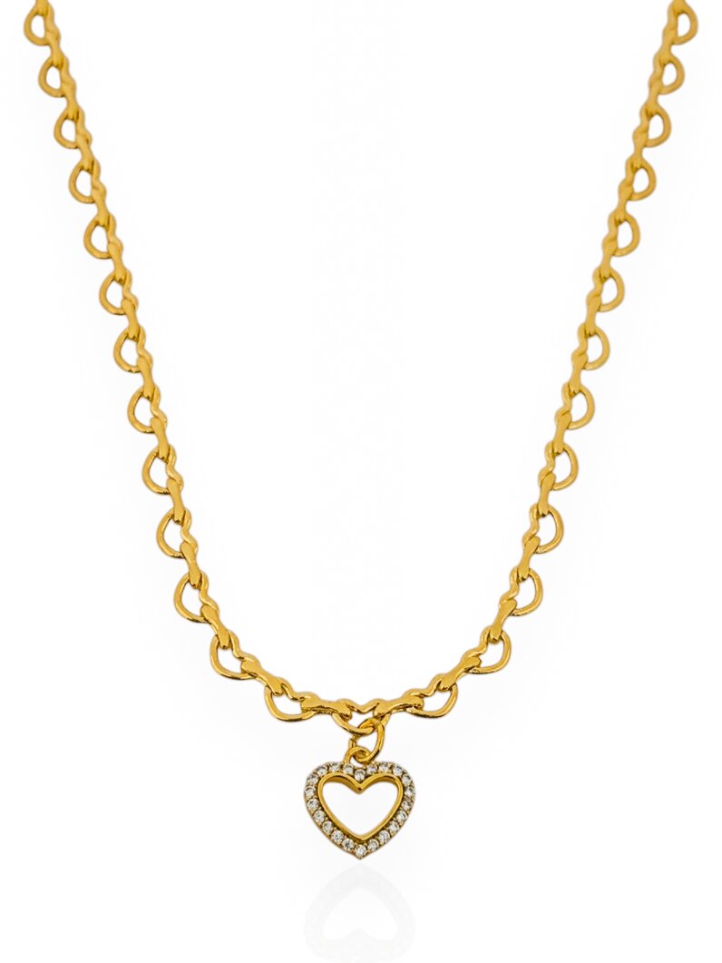 3. Colar Folheado a Ouro 18k Corrente de Corações Interligados e Micro Zircônia