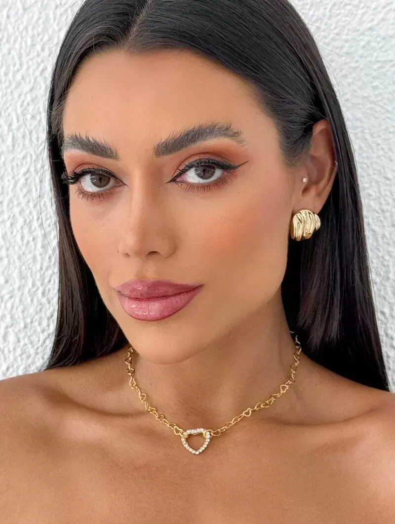 3. Colar Folheado a Ouro 18k Corrente de Corações Vazados com Coração Cravejado