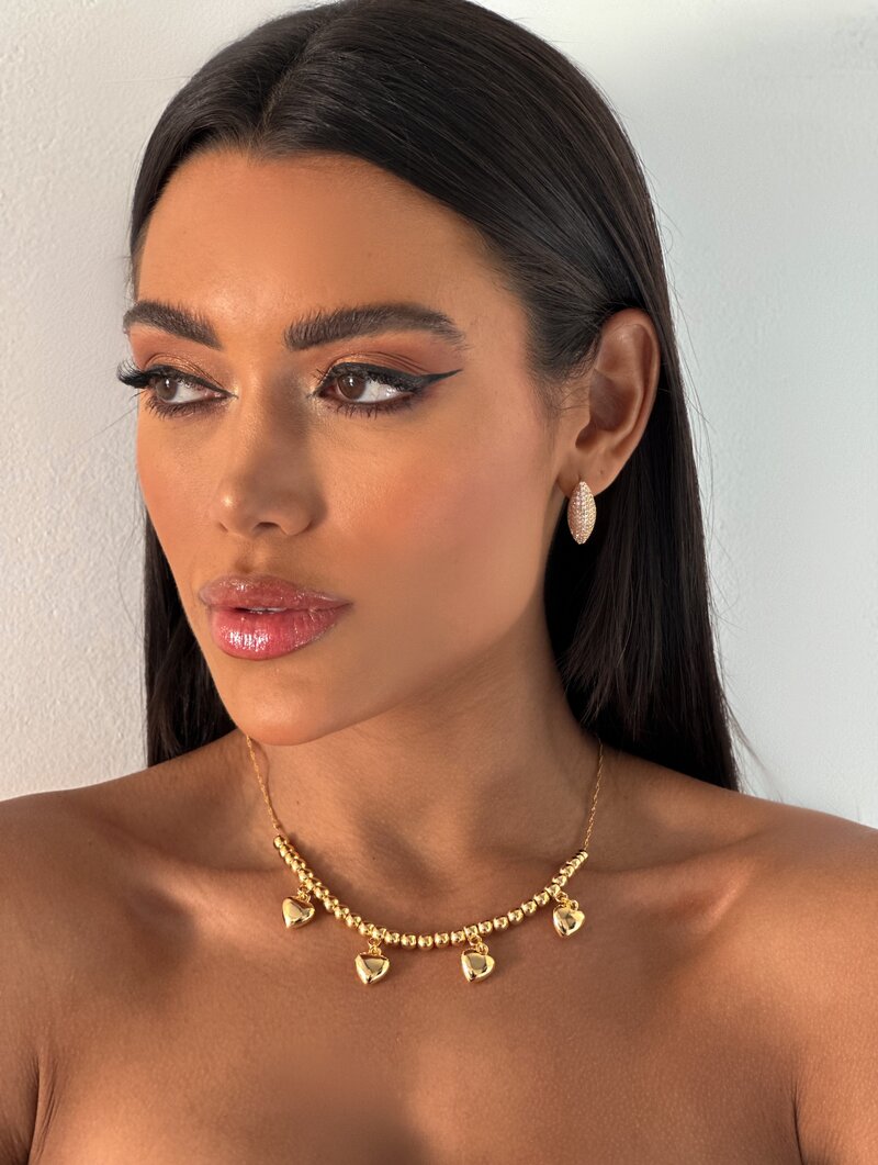 3. Colar Folheado a Ouro 18k Corrente de Esferas com Corações Lisos