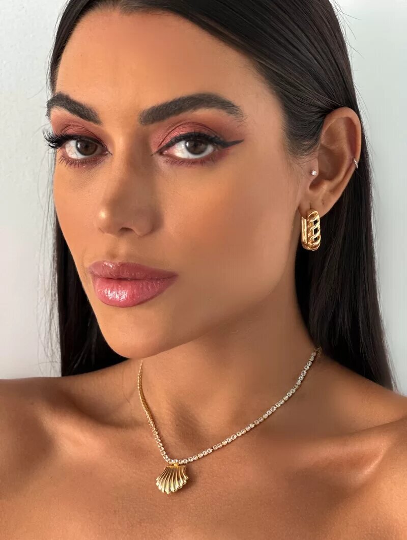 3. Colar Folheado a Ouro 18k Corrente de Zircônias com Concha