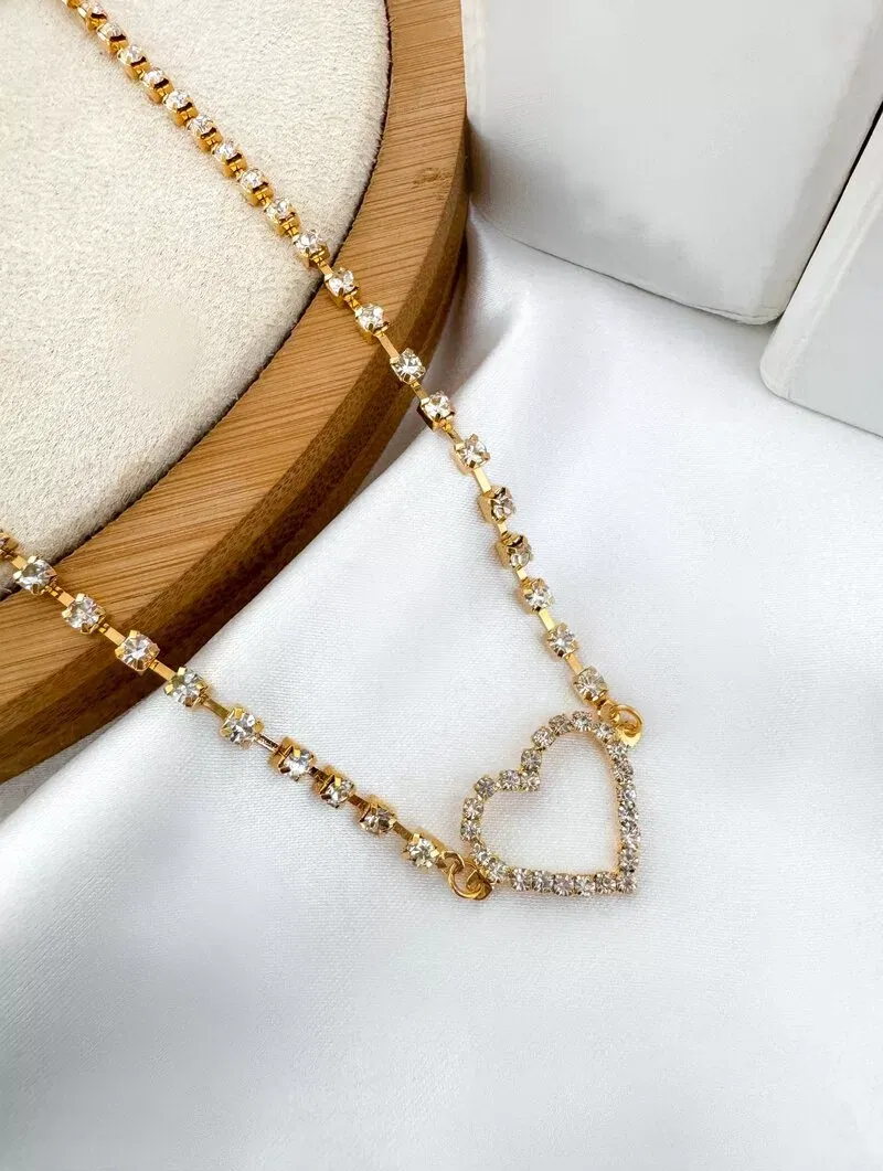 Colar Folheado a Ouro 18k Corrente de Zircônias com Coração