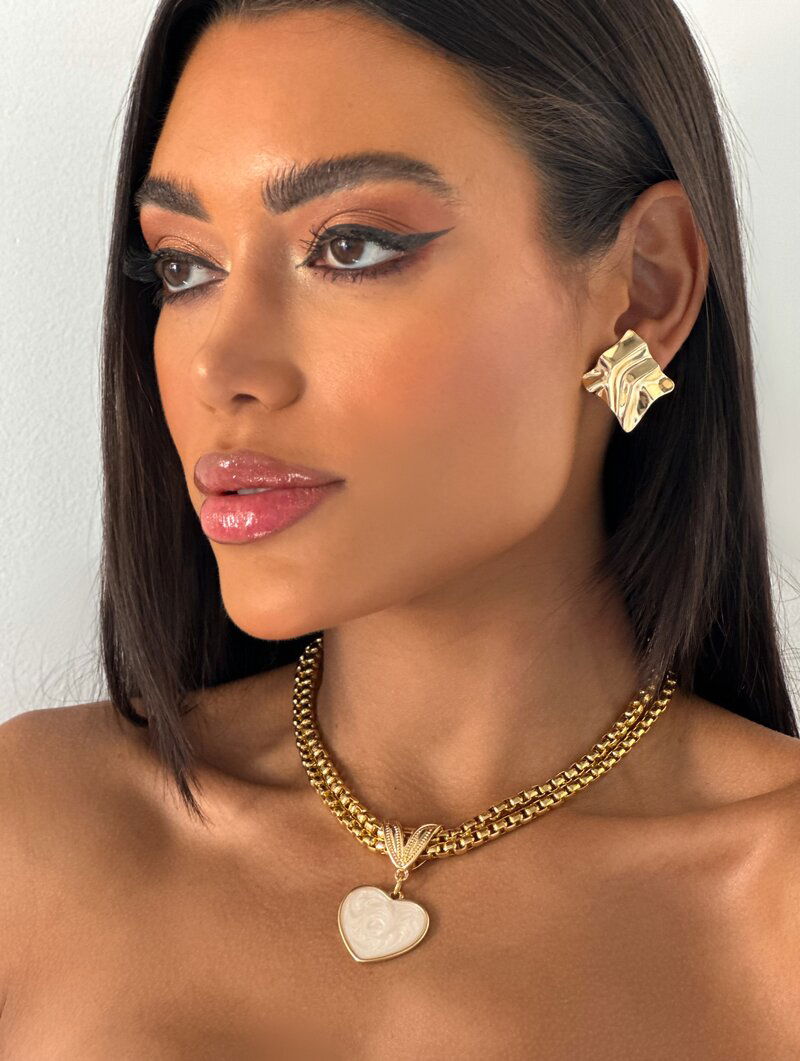 3. Colar Folheado a Ouro 18k Corrente Dupla com Coração Madrepérola