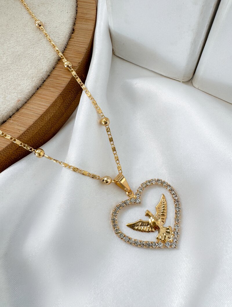 Colar Folheado a Ouro 18k Corrente Fina com Pingente Espírito Santo