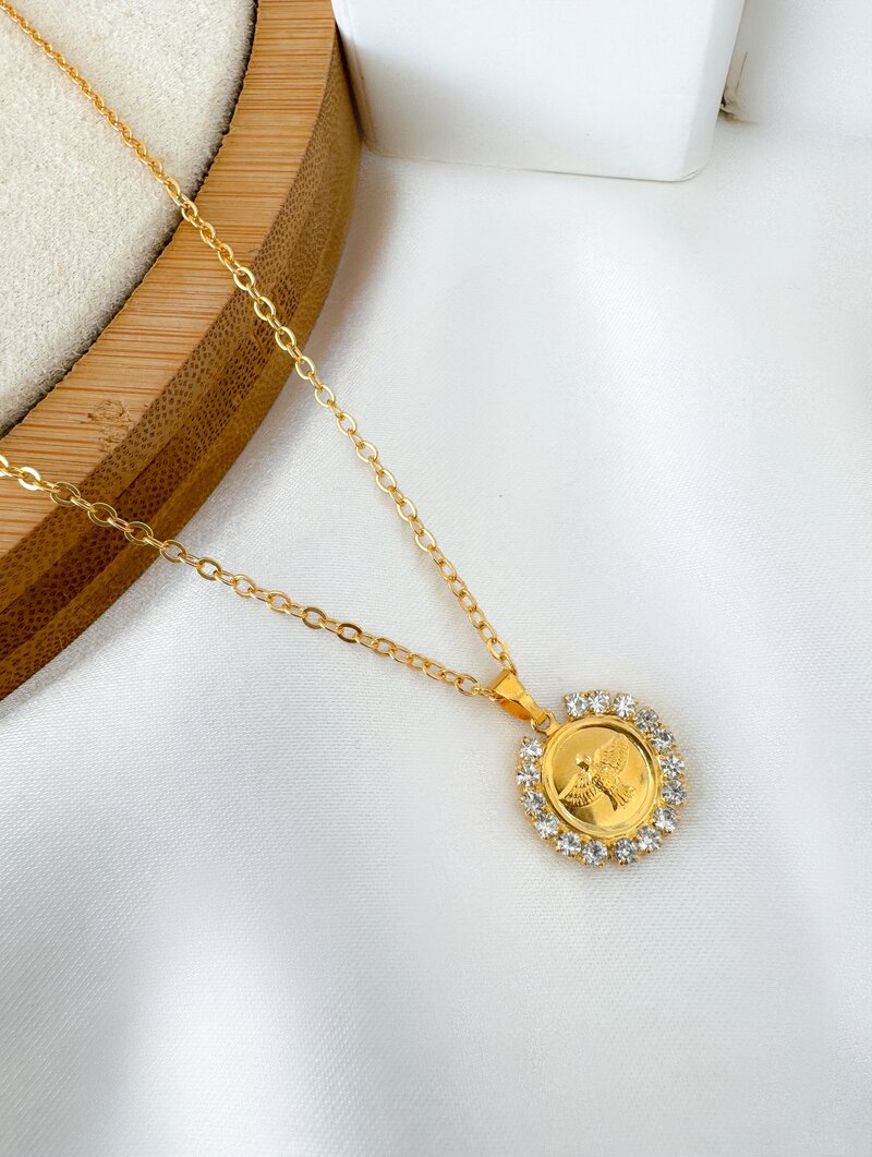 3. Colar Folheado a Ouro 18k Corrente Fina com Pingente Espírito Santo