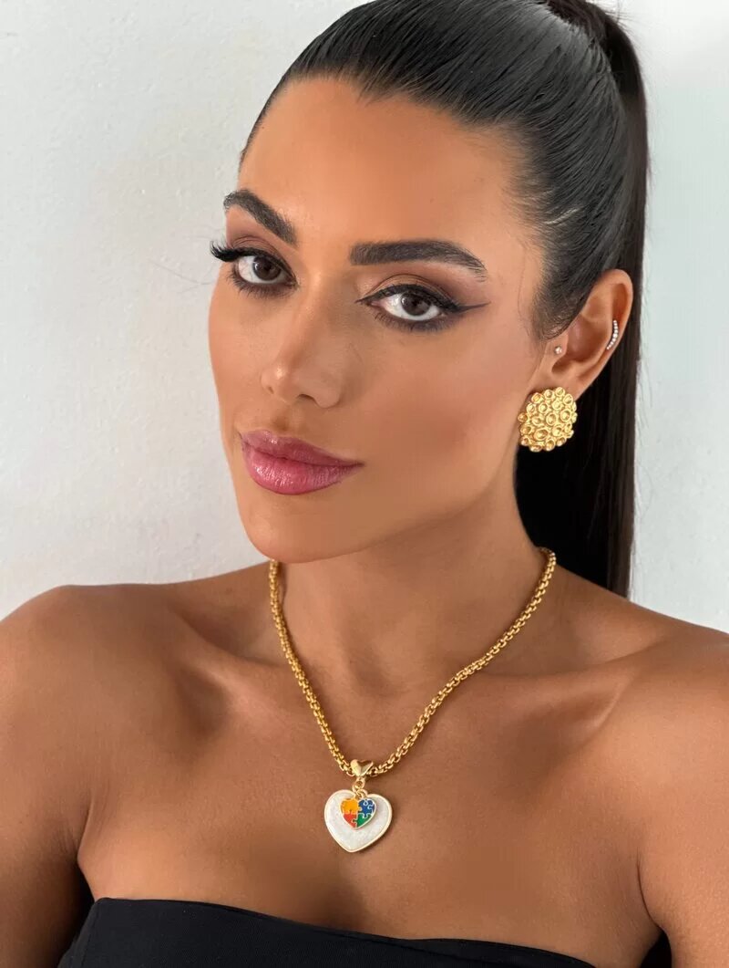 3. Colar Folheado a Ouro 18k Corrente Quadrada com Pingente Coração Neurodiversidade