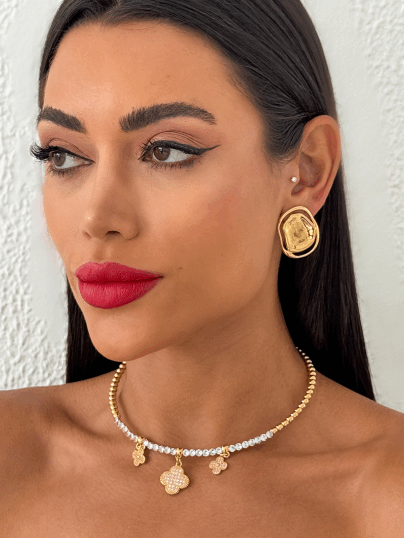 3. Colar Folheado a Ouro 18k e Prata Aro Com Inspiração Cravejado