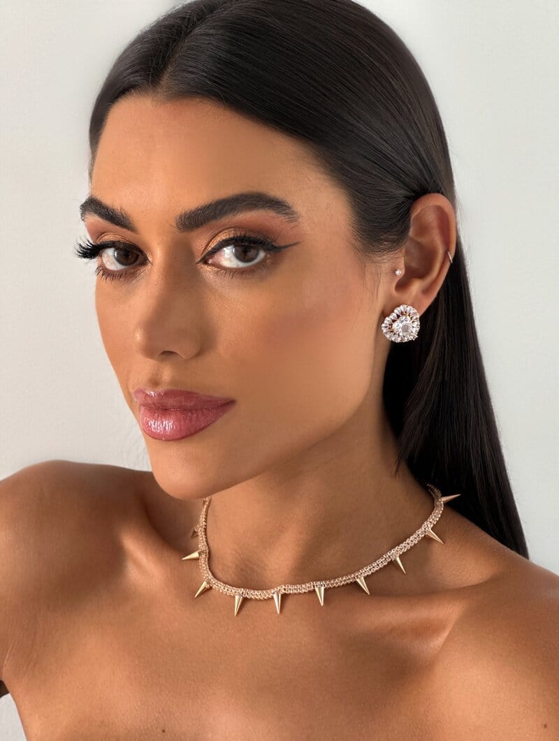 3. Colar Folheado a Ouro 18k e Prata Corrente de Micro Zircônias com Espinhos