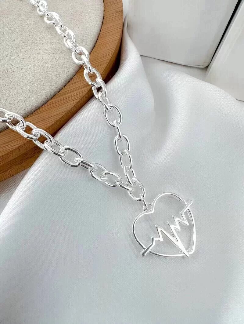 Colar Folheado a Ouro 18k e Prata Corrente Elos com Coração Batimentos