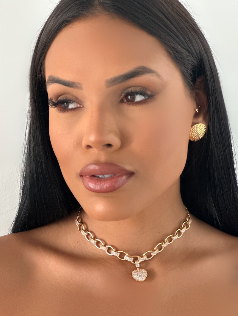 3. Colar Folheado a Ouro 18k e Prata Corrente Elos Lisos e Cravejados com Pingente Coração