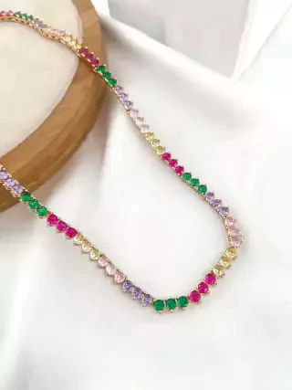 Colar folheado a ouro 18k e prata detalhe em zircônias - Fecho Tranqueta.