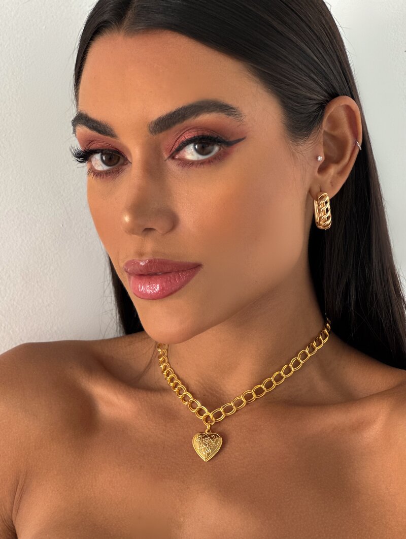 3. Colar Folheado a Ouro 18k e Prata Elos Duplo com Coração Relicário